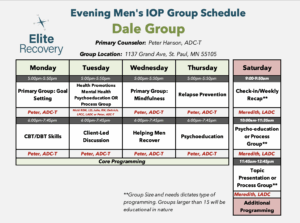 A typical week in our Intensive Outpatient Program includes a combination of structured group therapy, individual support, and education designed to strengthen recovery and build long-term stability.