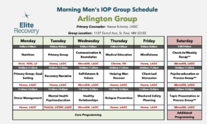 IOP is a structured, part-time treatment program that blends clinical care with personal accountability. At Elite Recovery, IOP includes group therapy, individual sessions, education groups, and coordinated support from a multidisciplinary team. Services are tailored to each client’s treatment goals, progress, and personal circumstances.